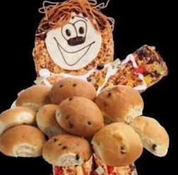 Du kan vælge mellem wienerbrød, vandbakkelse eller chokolade. Kagemand m. slik og 20 boller.