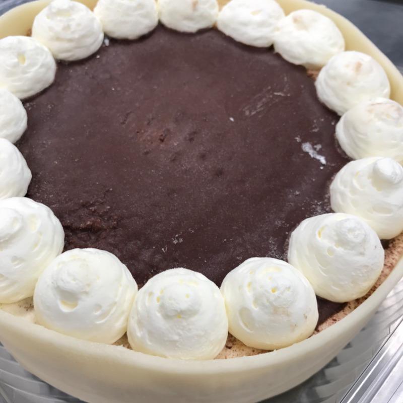 Othellokagen består af lagkagebund, flødecreme, marmelade og marcipanbånd nok til 6 personer